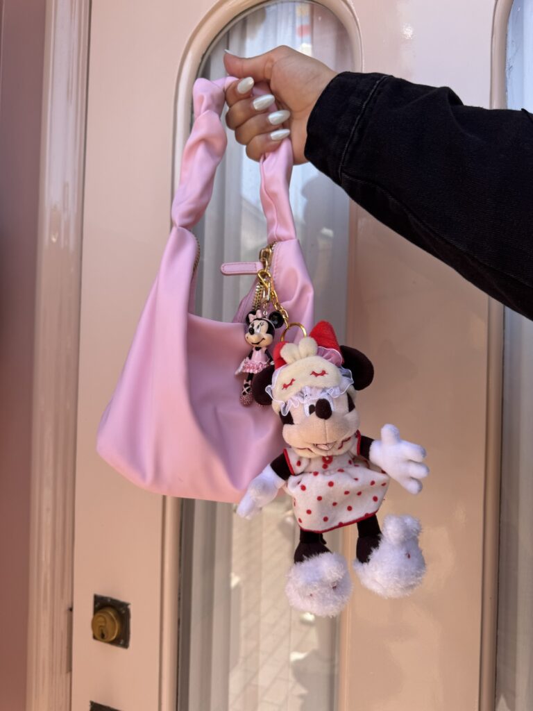 For my accessories, I chose my beloved pink heart ears – from the small shop Haivens Creations. I added my Stoney Clover scrunch bag with a plush keychain from my dear friend Nizhoni who brought it back for me from Japan. I finished it off with a Baublebar Minnie Mouse keychain.